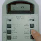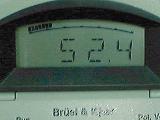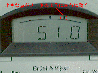 左の絵のように、液晶の小さな点が左右に動く、アナログメータ表示になっていると、デジタルの数値表示は止まってしまう。これを見て、うまく測定できないと勘違いしてしまう、あるいは間違った値を測定して記録してしまう、ということがありがちである。このようになっている場合は、ボタン