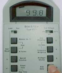 ボタン 7 を押して、目的の測定指標(通常はSPL、音圧レベルを測定)が表示されるかを確認する。